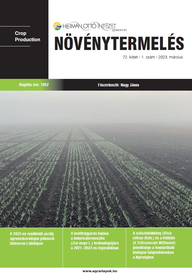 Kith Károly – Zelenák Annabella – Ibtissem Balaout – Nagy János: A levéltrágyázás hatása a kukoricatermesztés (Zea mays L.) technológiájára a 2021–2022-es évjáratokban